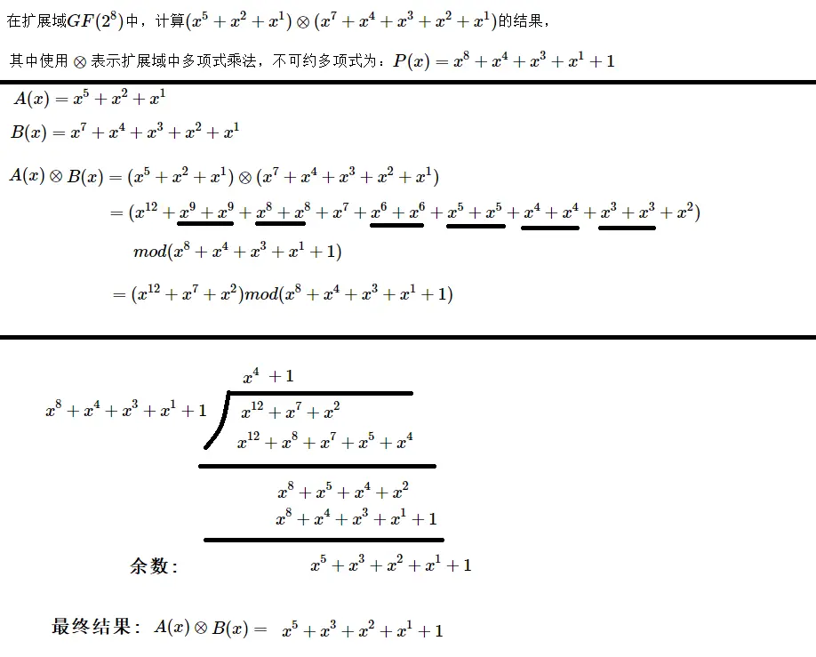 为了处理扩展域,我们就要使用不同的符号表示扩展域内的元素,使用不同的规则执行扩展域内元素的算术运算。